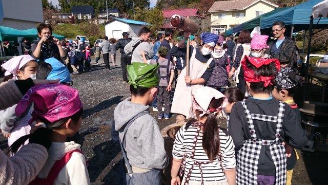 子供たちが田植えをし、稲刈りもして収穫したもち米で餅を沢山搗いて、地元の皆さん、父母祖父母、家