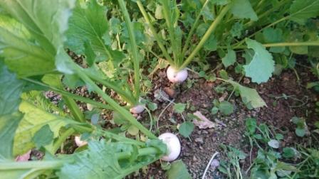 ↑11月末~の出荷になると思いますがカブのスワン。作りやすい品種でありながら食味がいいことでカブの中では有名だとおもいます。実の部分も大きくなってきましたが、葉っぱも実以上に大きくなっています。