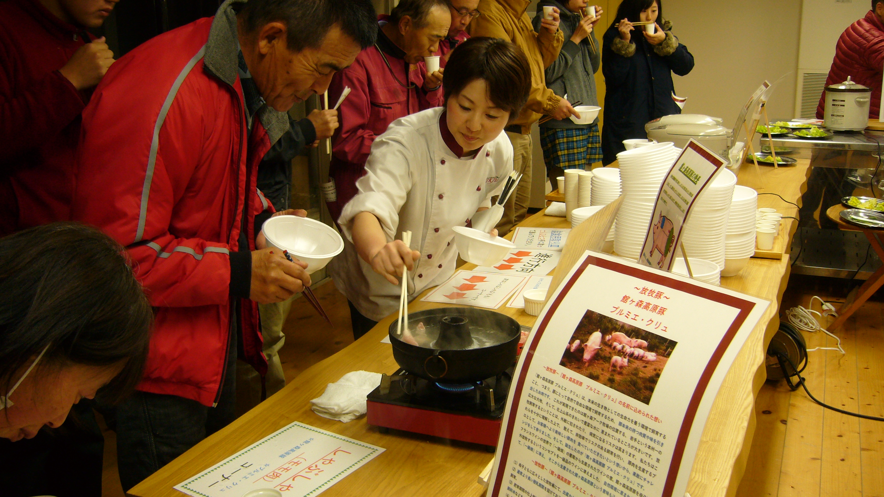 養豚事業の仕事内容発表では放牧豚プルミエ・クリューの特徴として、自然の環境に放牧飼育をし、