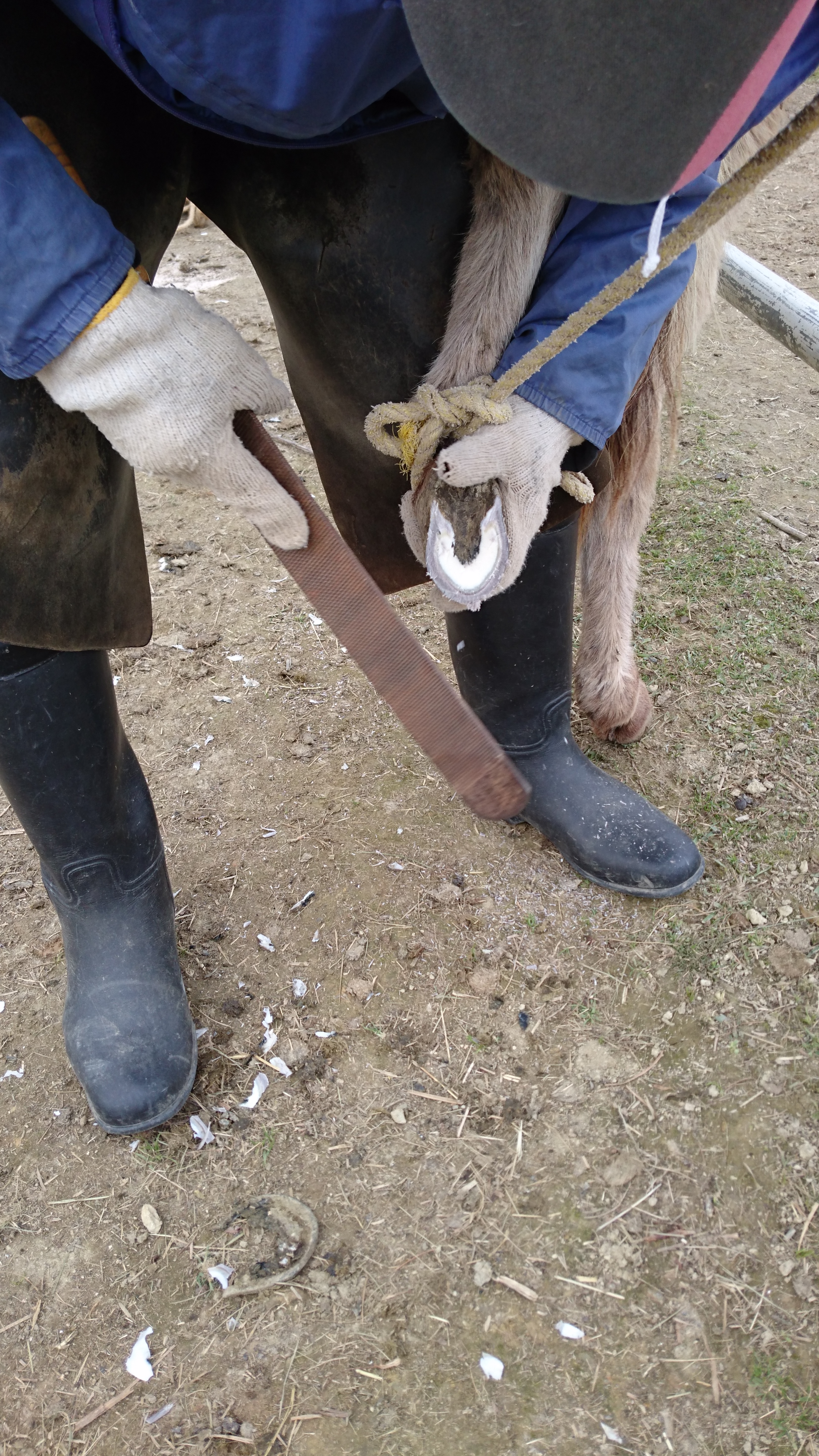 蹄を切ったら綺麗に整え大きなヤスリで削ります。