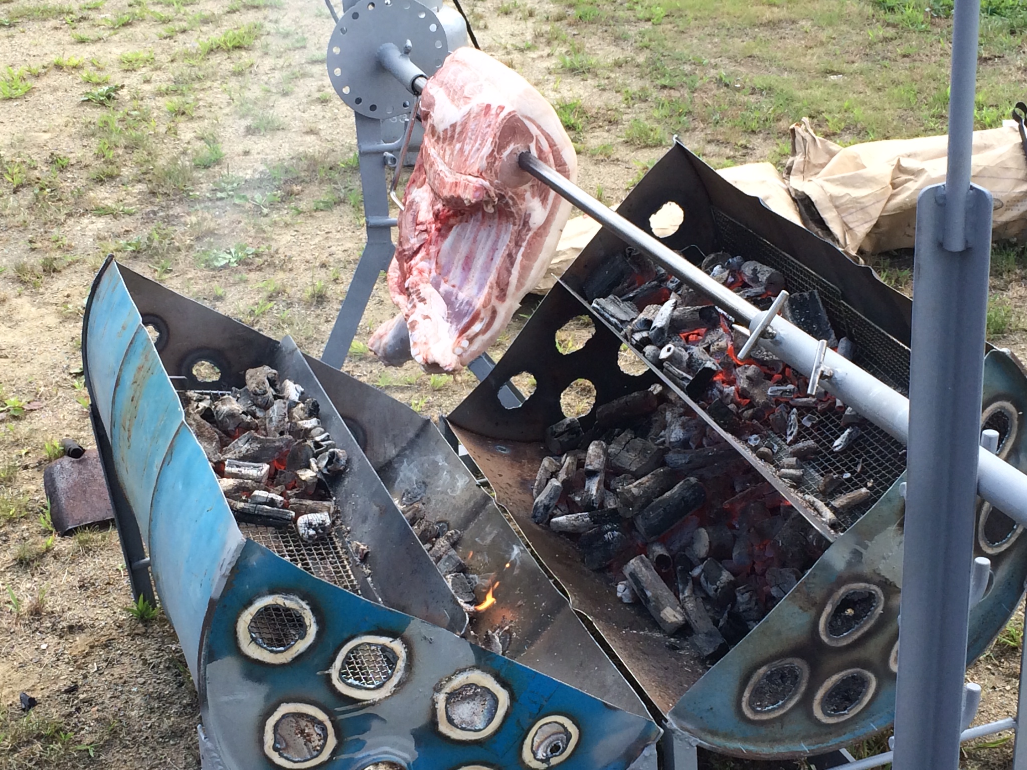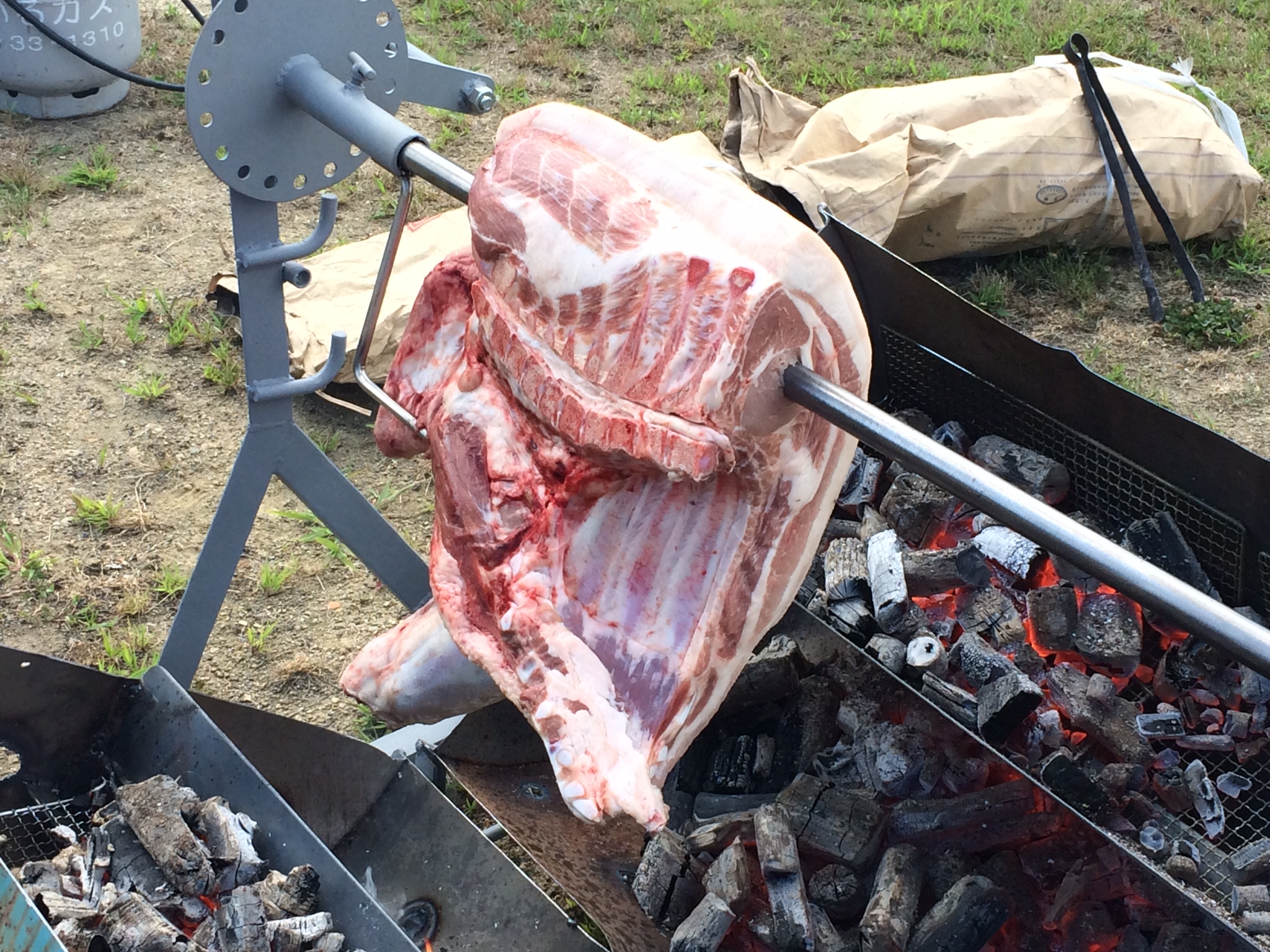 先日、館ヶ森高原豚の枝肉の一部を丸焼きの試作をしました。↓↓