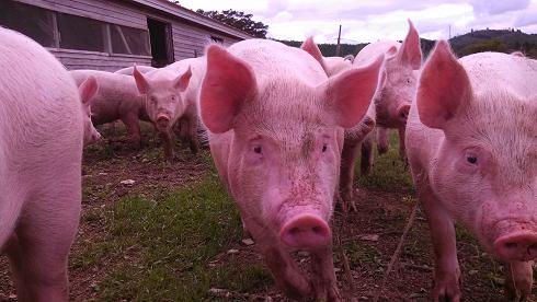 すでに母豚からは離れ、今は子豚のみで飼育しています。