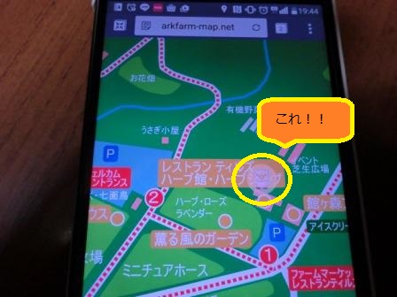 たとえば、現在ハーブ館にいるとします。その際にお持ちのスマホのGPS機能をONにしていますと・・・