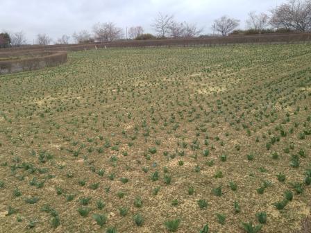 場内のメイン道路や大きな花畑の「夢見ヶ丘ガーデン」のチューリップはぐ――んと背伸びをしてきております。中旬あたりには花が咲き始めるのではないでしょうか。