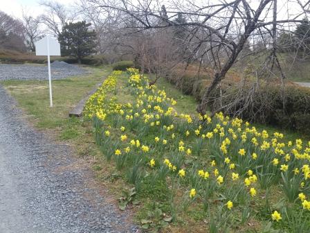ファームマーケット前の駐車場奥には2種類のスイセンが見事に花をつけていました。