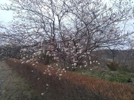 桜の木も太陽のあたりやすい場所はたくさんの花をつけ始めています。