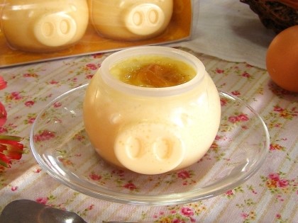 はじめは、ぶーりん。ぶたさんの形をしたけっこう食べごたえのあるプリンは