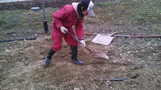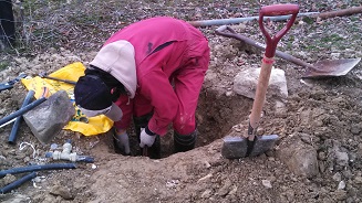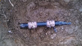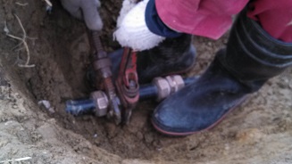 土の中に埋まっている水道管をつなぎ合わせる工事を実践で指導します。