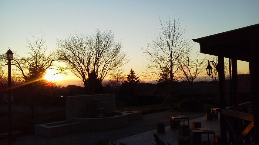 ・館ヶ森アーク牧場のファームマーケット前から臨む夕日