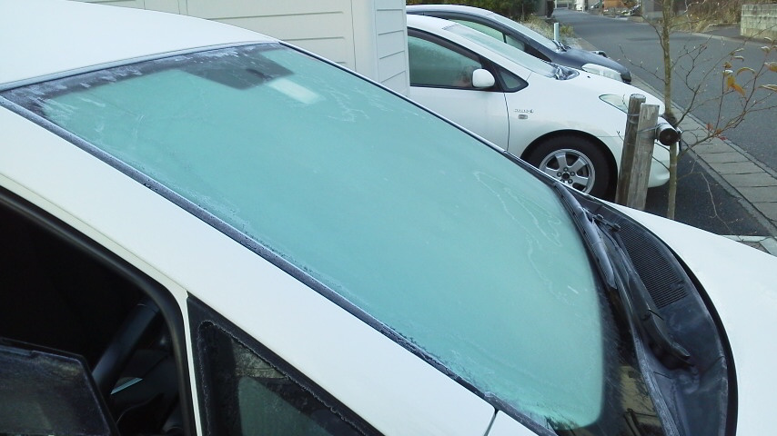 朝夕、車のフロントガラスは凍てつき、前方が全く見えない状態です。