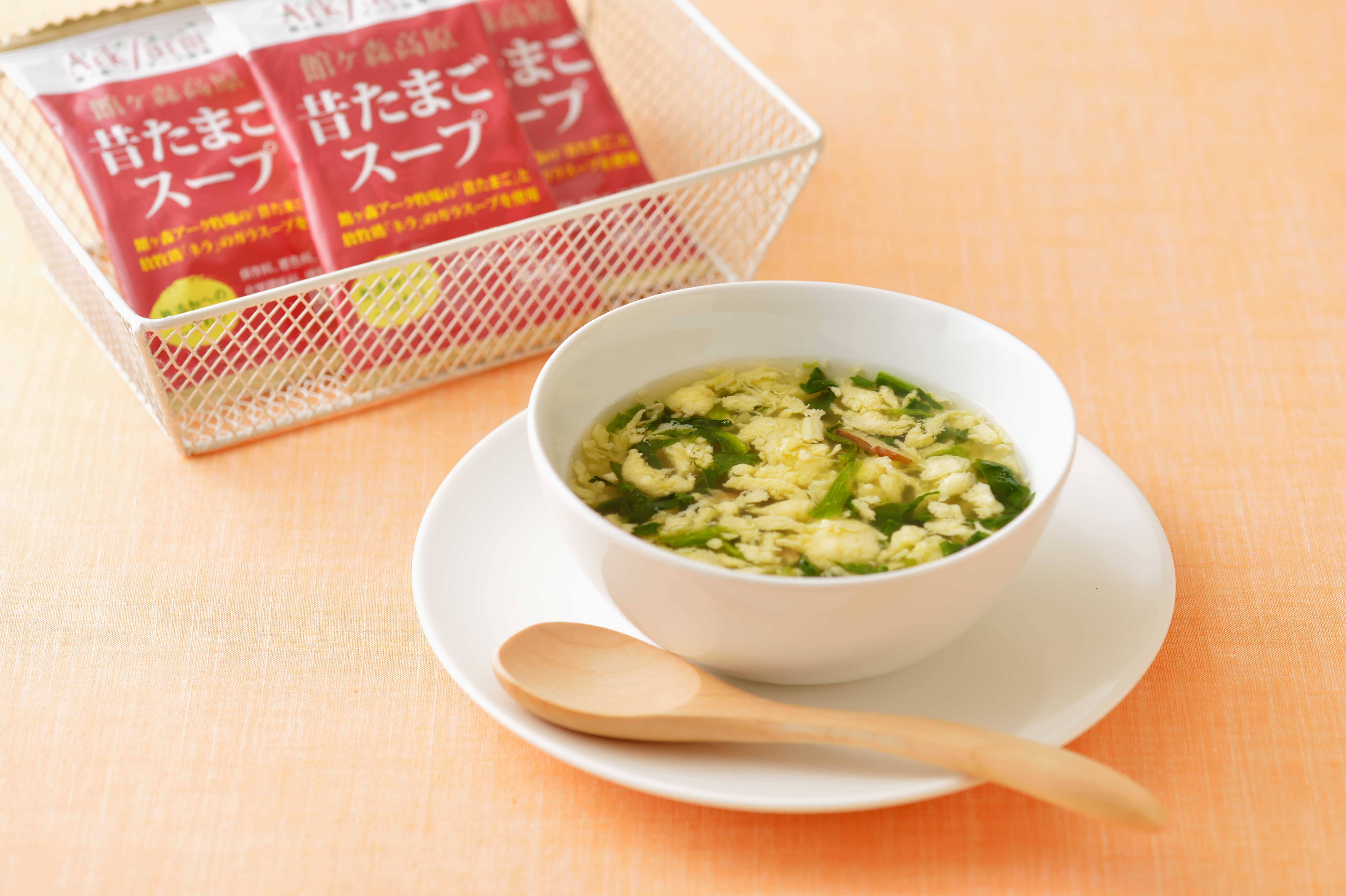 朝の忙しい時間は、商品に熱湯を注いでいただき1分で卵スープに!