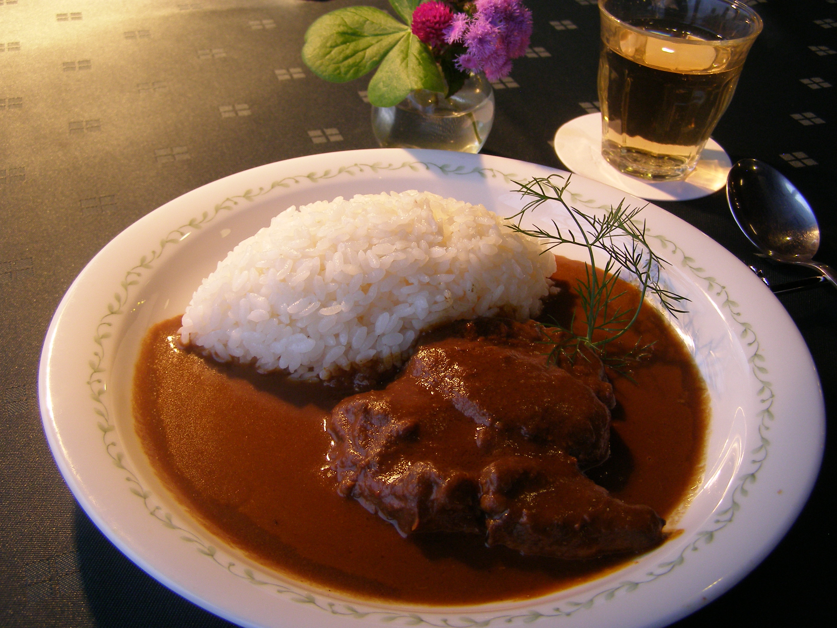 館ヶ森高原豚のホホ肉をおしげもなく使用したカレーです。
