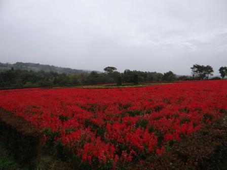 ここにきてサルビアの赤い花が栄えてきて、今が見頃かと思います。