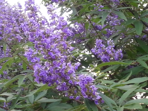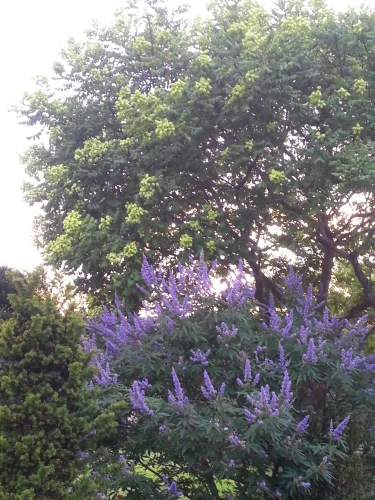 手前が西洋ニンジンボク、奥が菩提樹です。