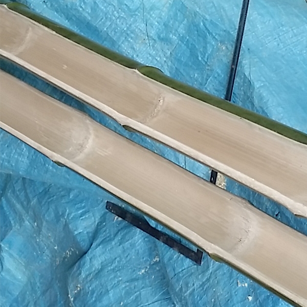 まずは、竹を割って節を外し、面をなめらかにしていきます。