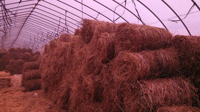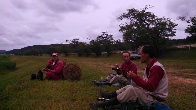動物達が冬に食べる乾草を河川敷から700個丸1日かけて運びました。