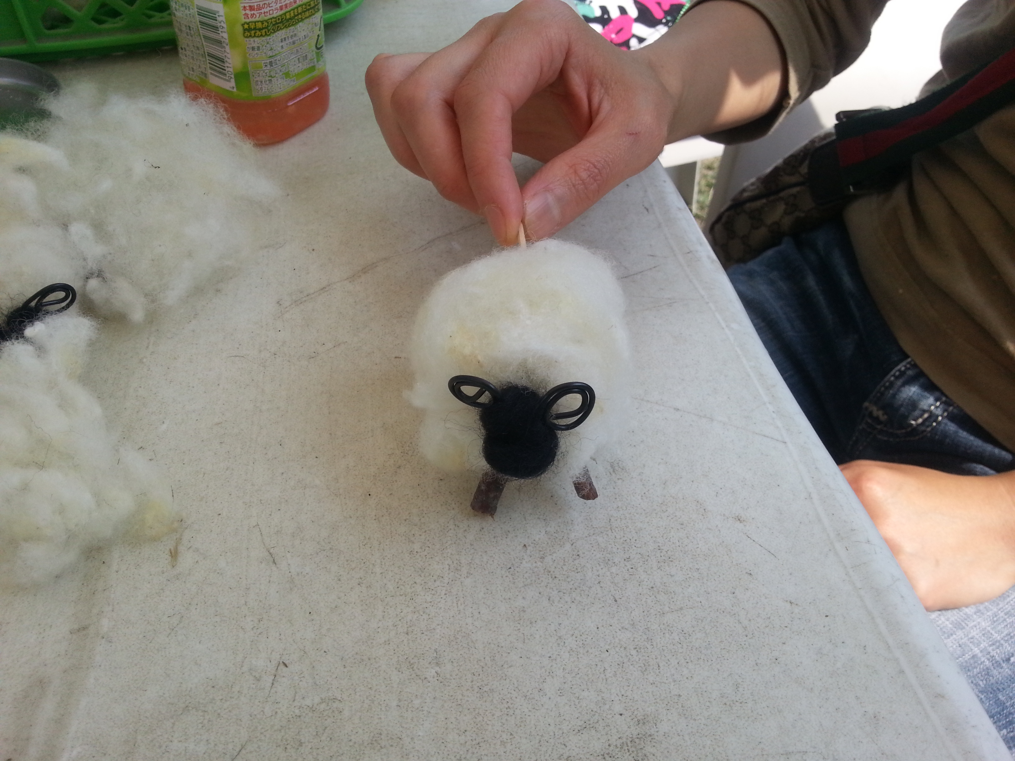 牧場のひつじさんの毛を使ってマスコットを作りました。↓↓