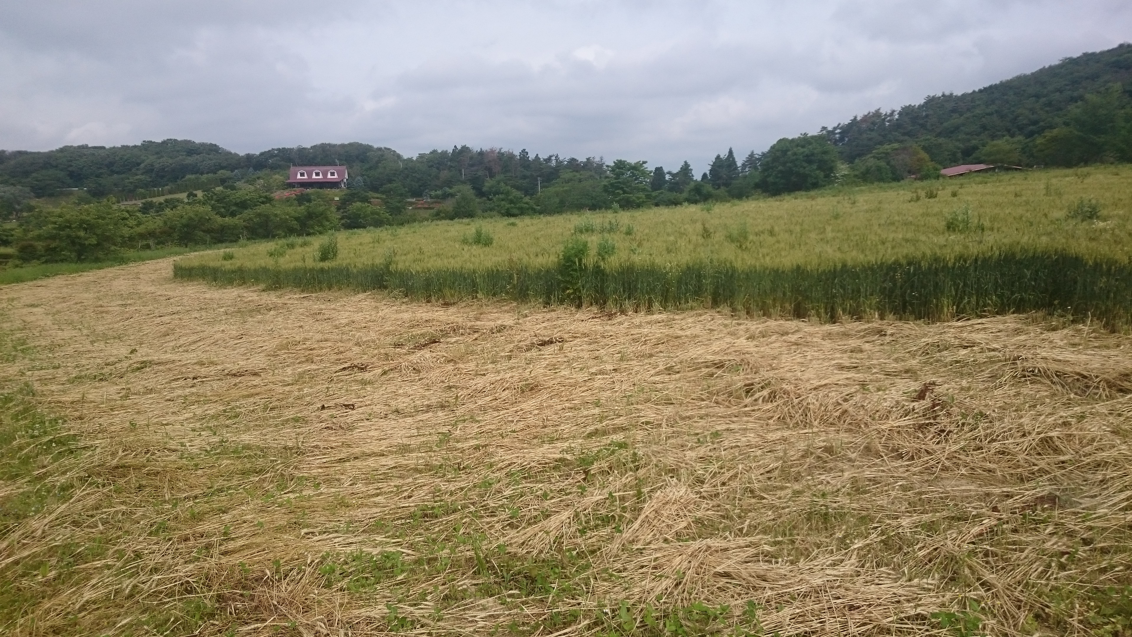 (涙、涙、涙) 今年は小麦畑の雑草が元気すぎて大変な勢いなので、その雑草の種が落ちないうちに、断腸の思