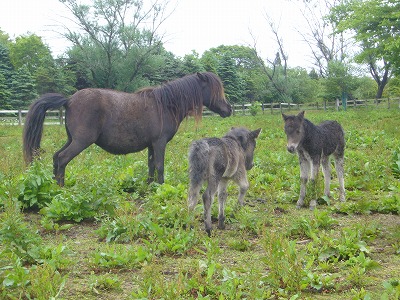 ゴイチくんは腕白で、母親も放任主義のようで生まれた翌日にはほかの先輩ポニーに混じって遊んでいましたね。