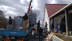 さて、ファームマーケットにある設備の中で一番大きなオーブンの移動がありました。