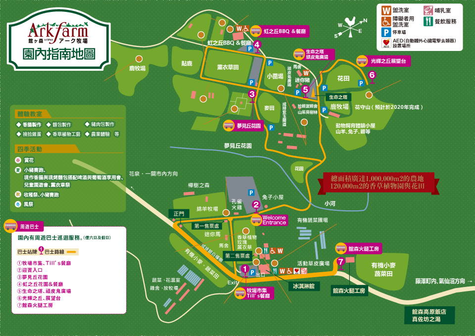在廣達約100公頃的巨大牧場內巡迴的周遊巴士。還會由工作人員介紹館森方舟牧場代表性景點!