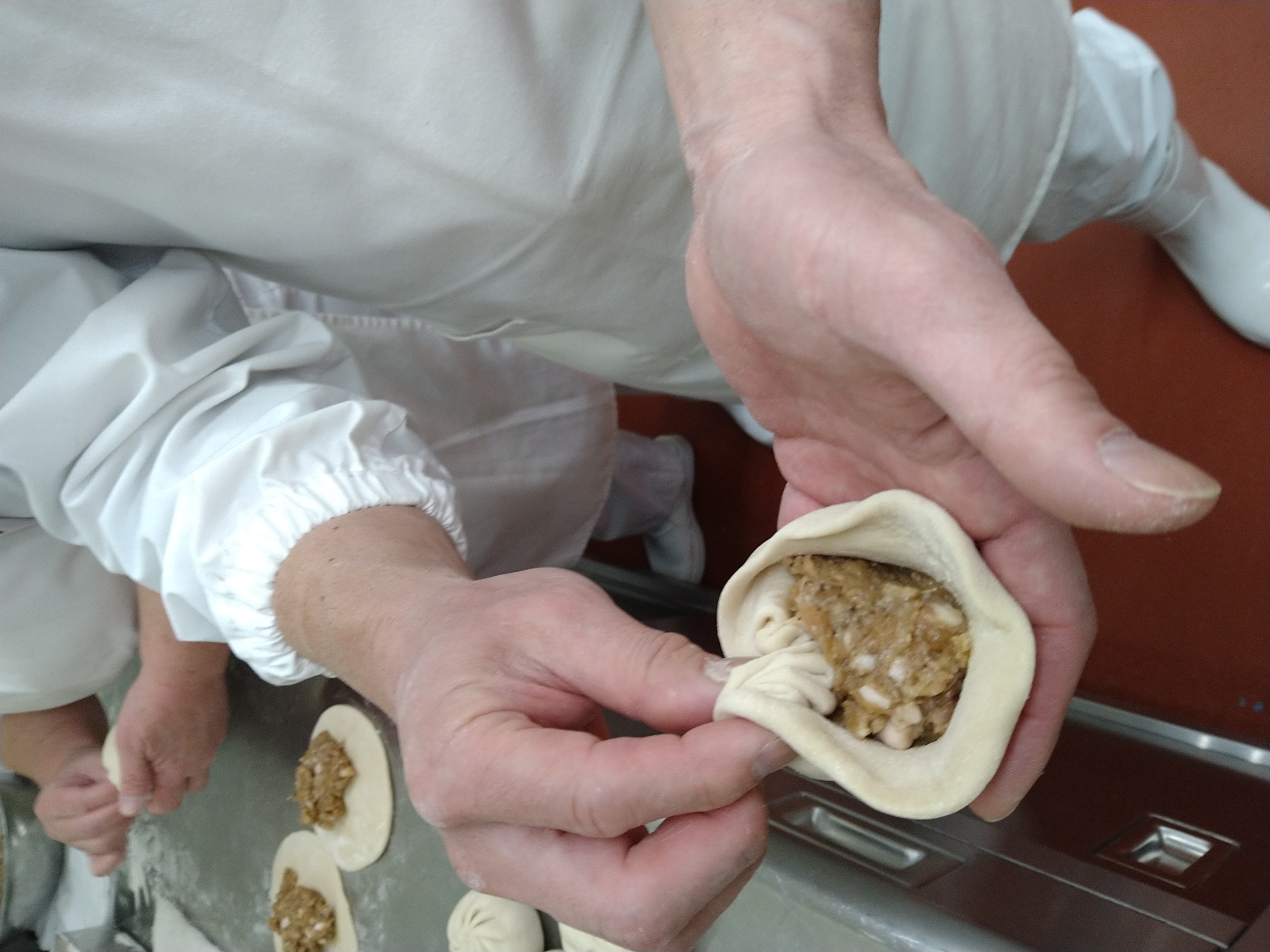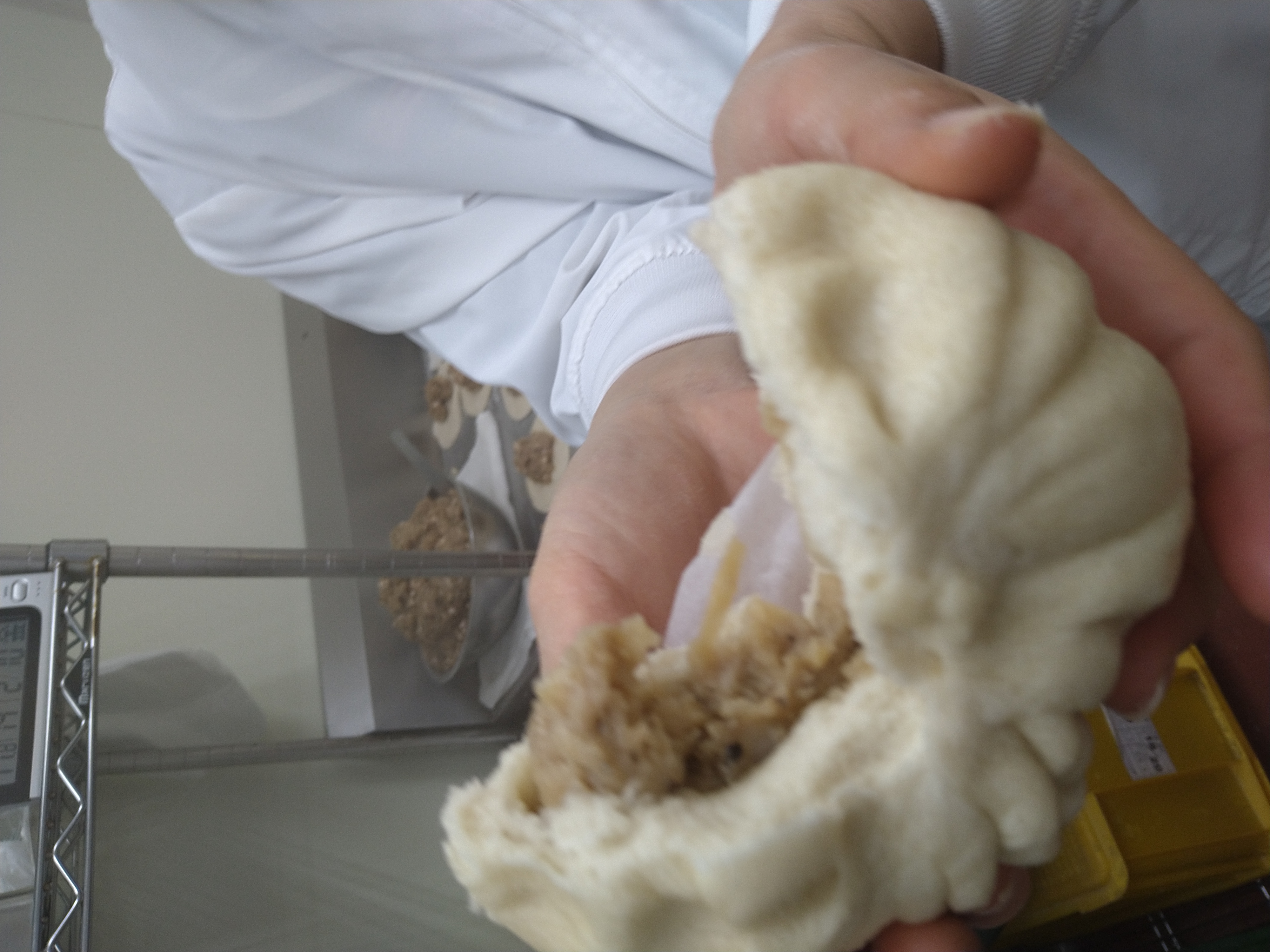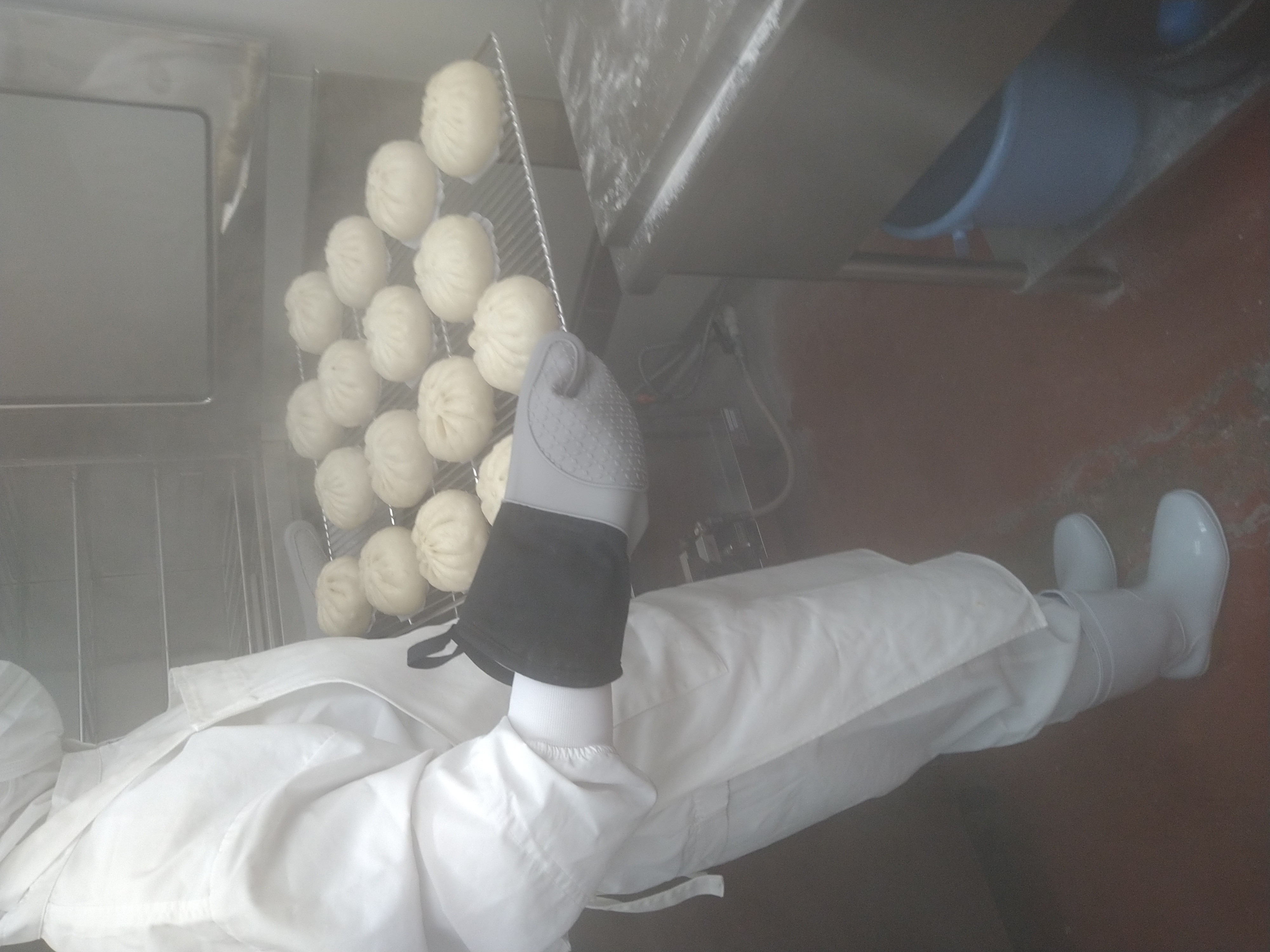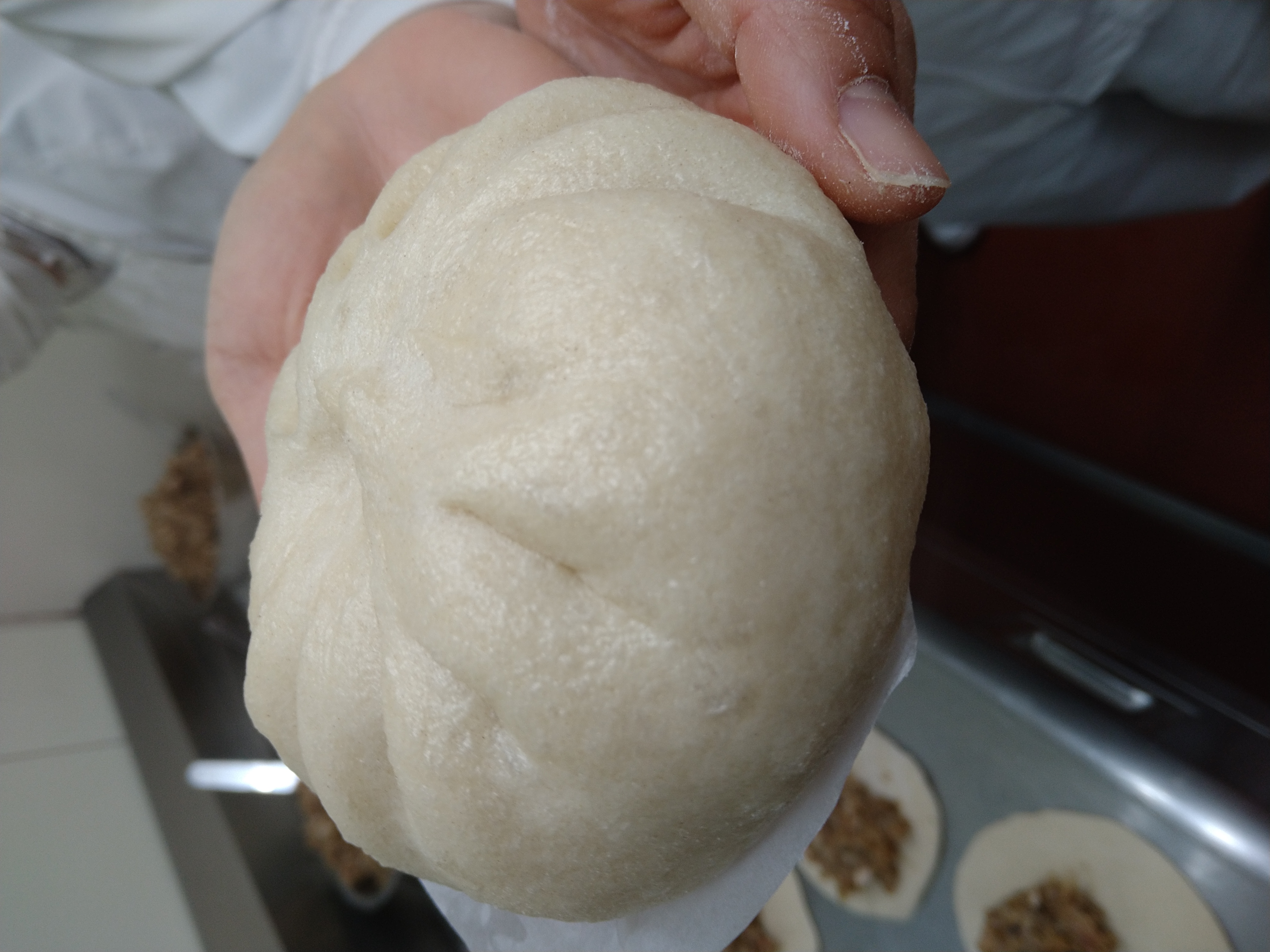Warm pork buns ready to eat in the kitchen car in front of the ham workshop,