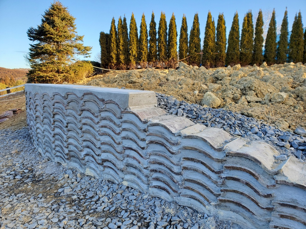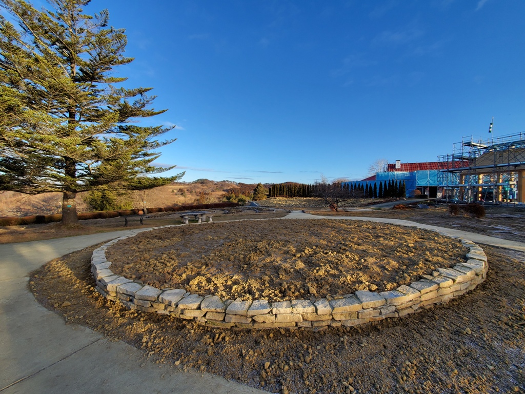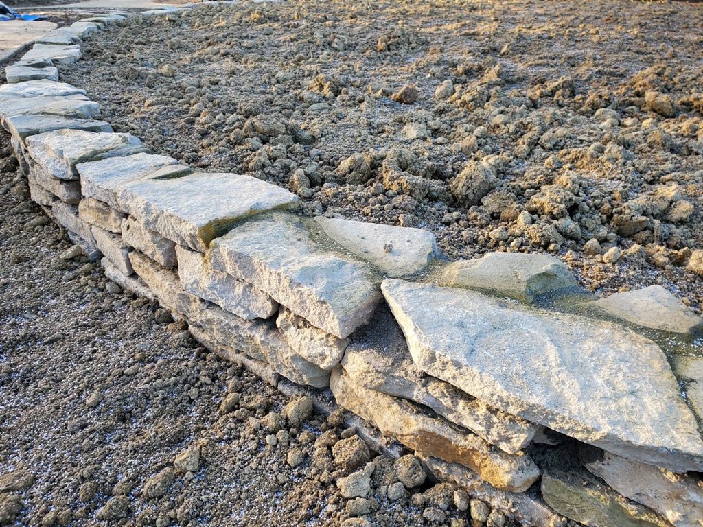 This is a flowerbed made by piling up British honey stones (*honey-colored stones).