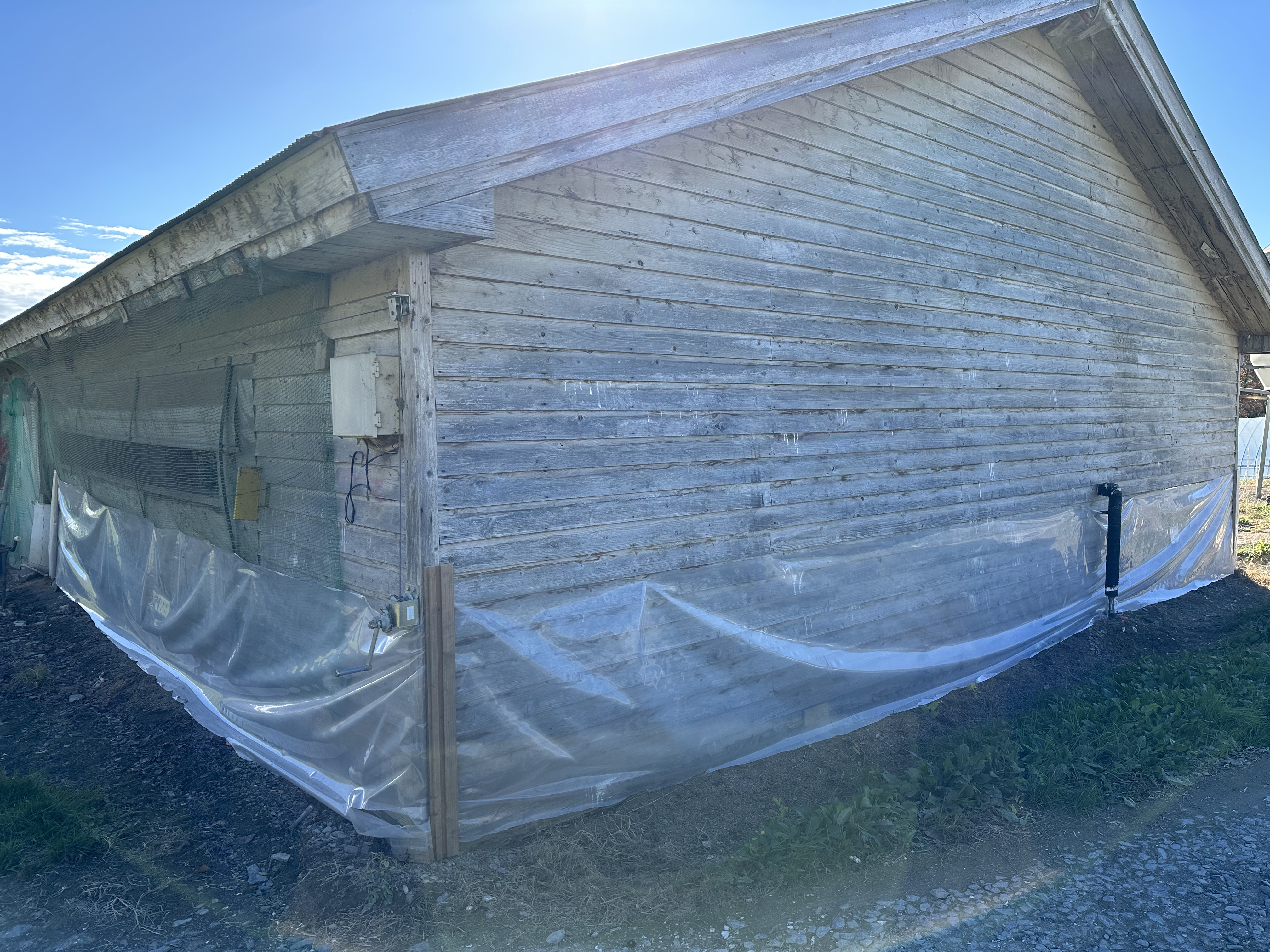 Put a plastic sheet around the poultry house so that the wind does not hit the chickens directly.