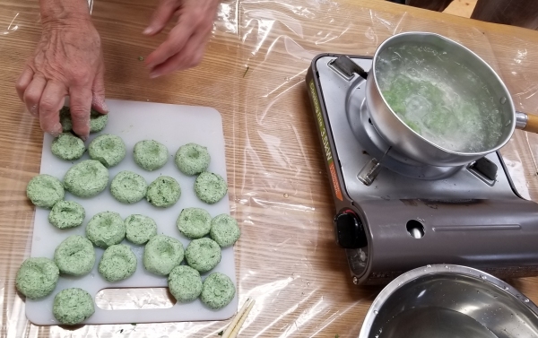 Wild herb tea and kusamochi made with flowers picked while walking around the ranch were very popular.