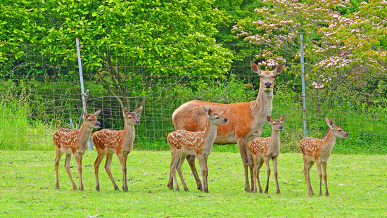 Around the beginning of June, red deer give birth, and at the deer farm next to the animal breeding experience house,