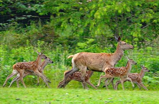Currently, six fawns snuggle up to their mother deer, sometimes running around energetically and squeaking.