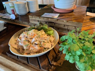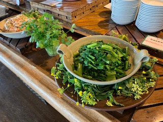 At the restaurant, you can enjoy freshly harvested vegetables grown on the farm.