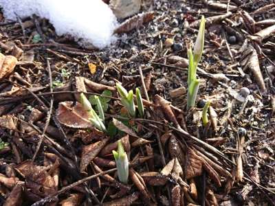 In such a way, the snowdrops that bloom first in spring have flower buds in the garden.