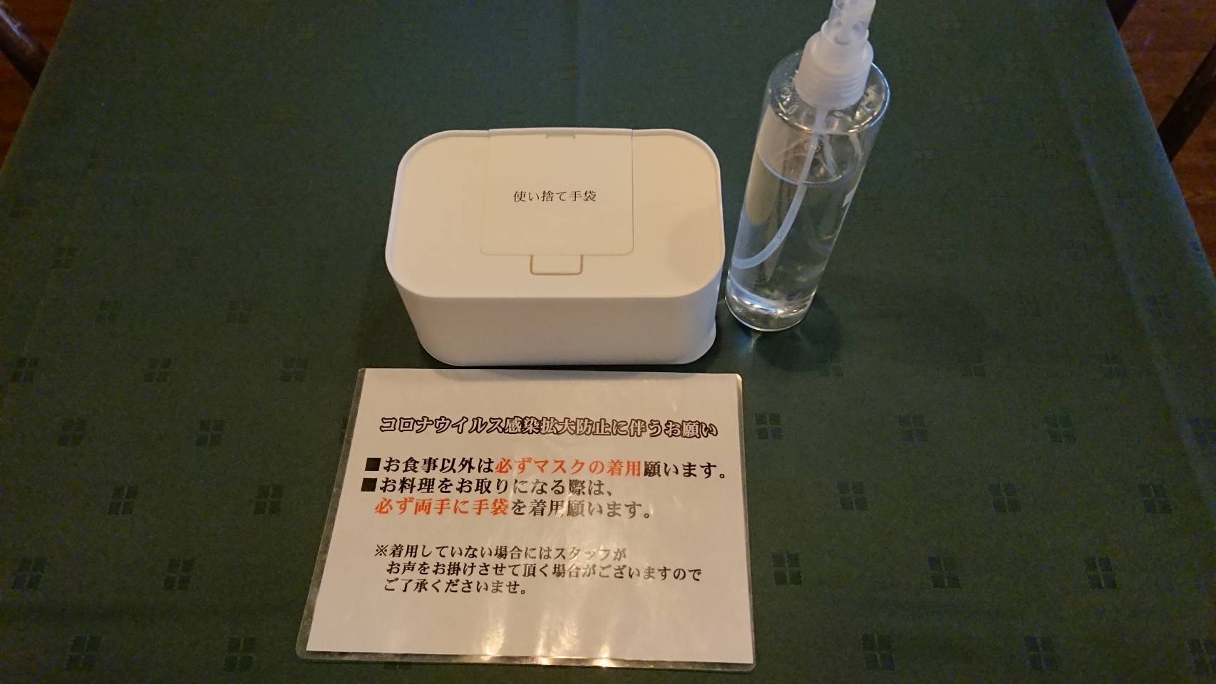 Vinyl gloves are prepared at each seat along with alcohol disinfection.