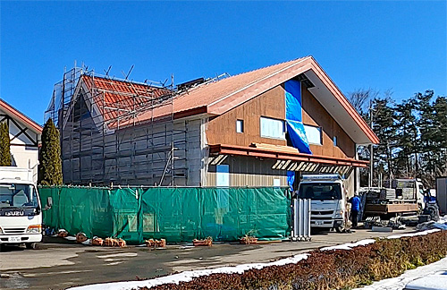 The roof is now up, exterior wall work is progressing, and interior work is progressing steadily.