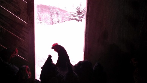 In the photo, when I belonged to the poultry farming club, did you envy the snowy scenery? chickens watching.