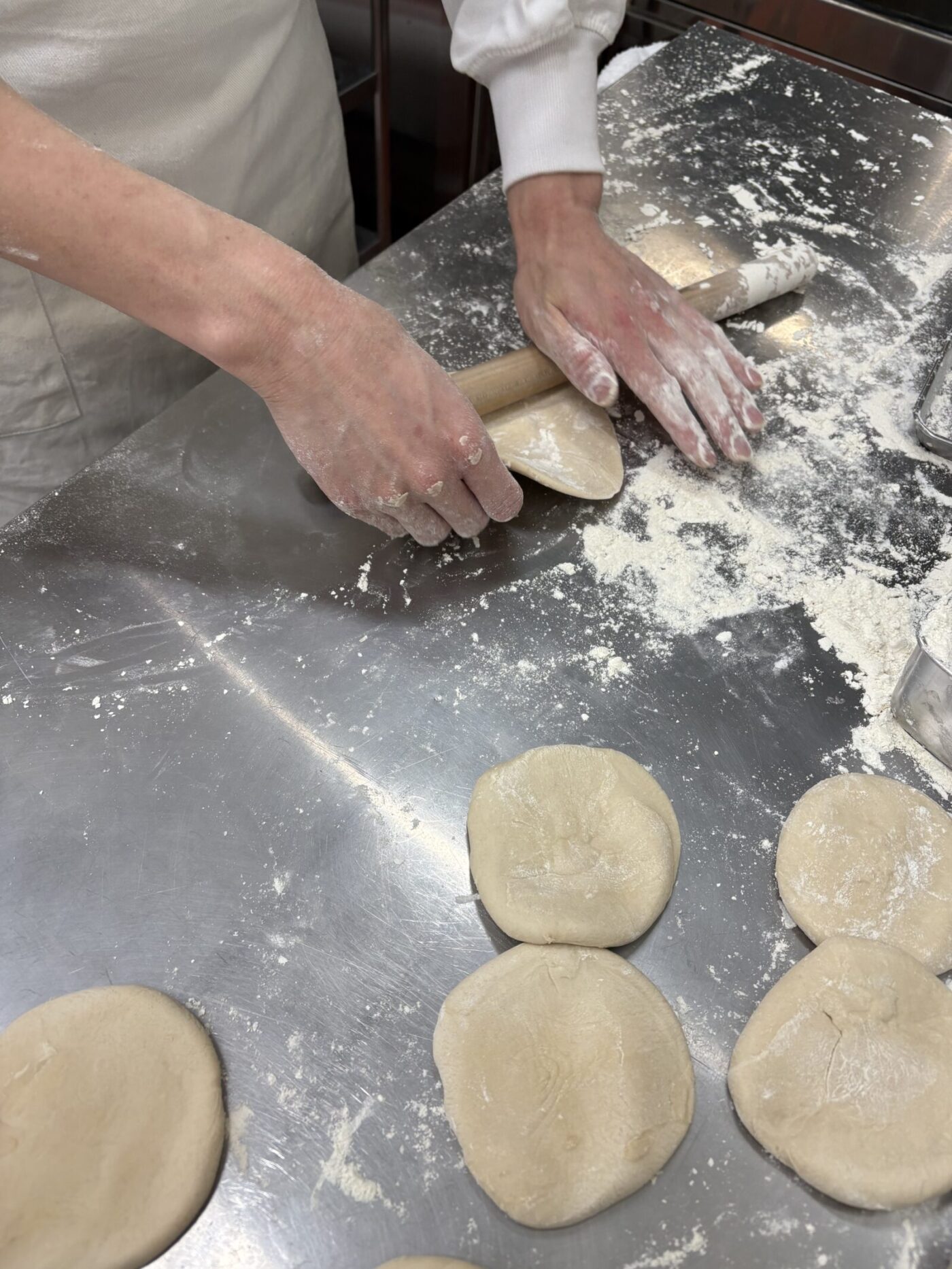 ミキサーで生地を作り、出来上がった生地を成形し