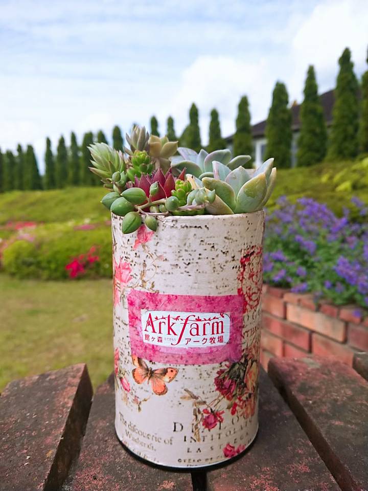 I would like to tell you about an arrangement using empty cans of ARK Ranch's original herbal barley tea.