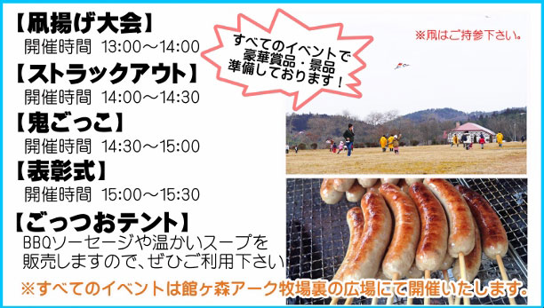 This coming Sunday, February 7th, the 12th Tategamori Kaze Matsuri will be held at Tategamori Ark Ranch.