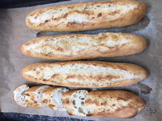 Spray the baguette and bake it in the oven at 220°C for 2-3 minutes.