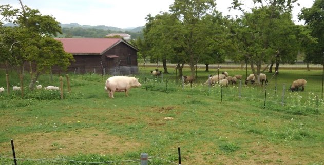 The grazing area for sheep mothers and their calves is also close to the huts for grazing pigs.