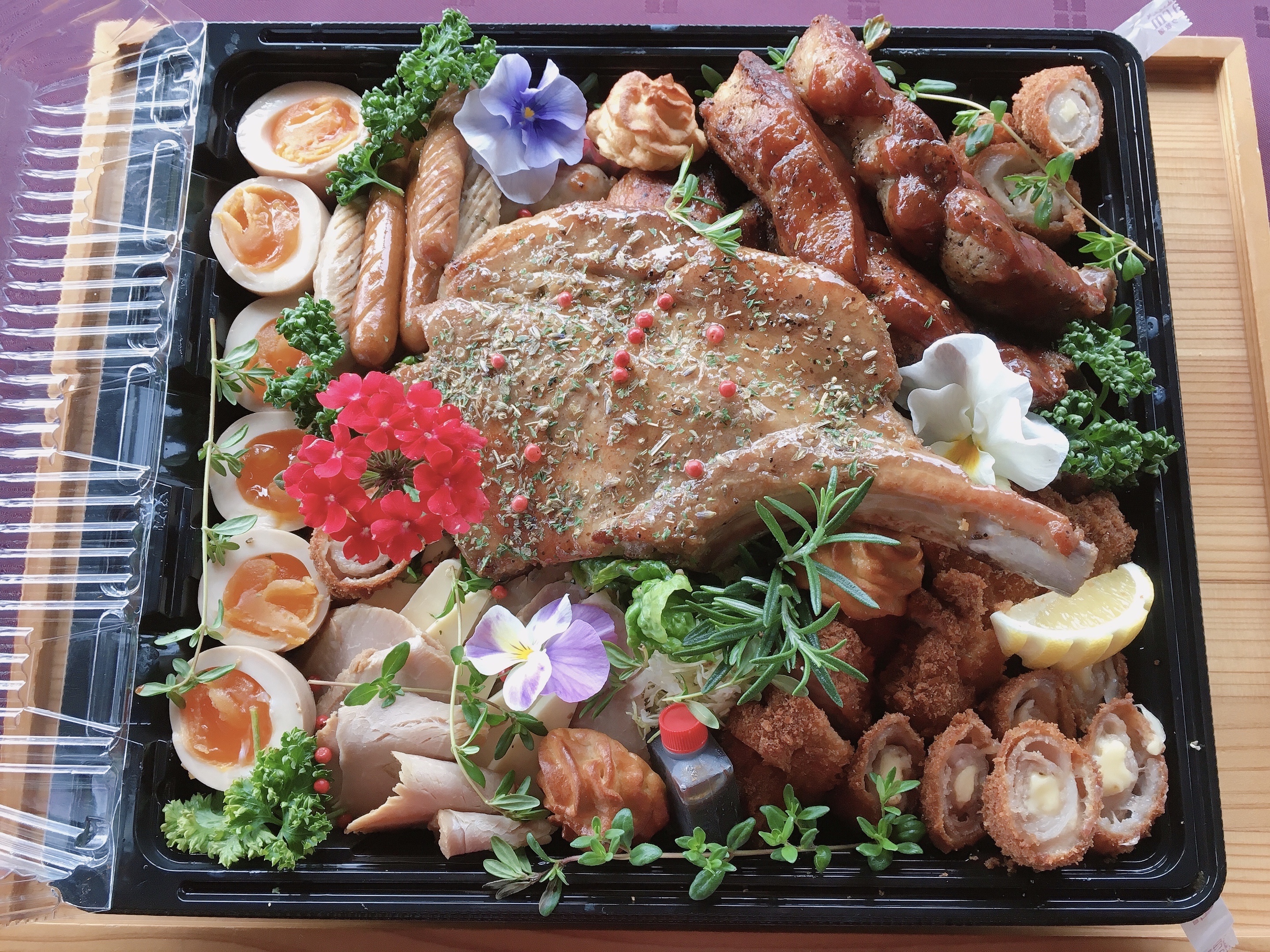 We have 3 types of hors d'oeuvres that will satisfy everyone, 2 types of packed lunches, and 4 types of Tategamori Kogen Pork Bentos.