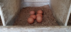 ↓These are freshly laid eggs in a chicken house.