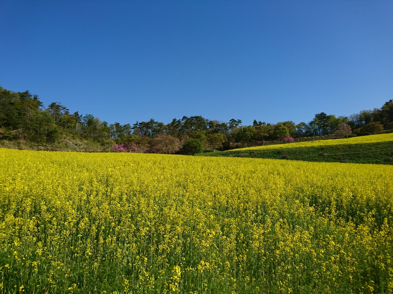 The yellow carpet in the distance is rape blossoms ``Kirariboshi''