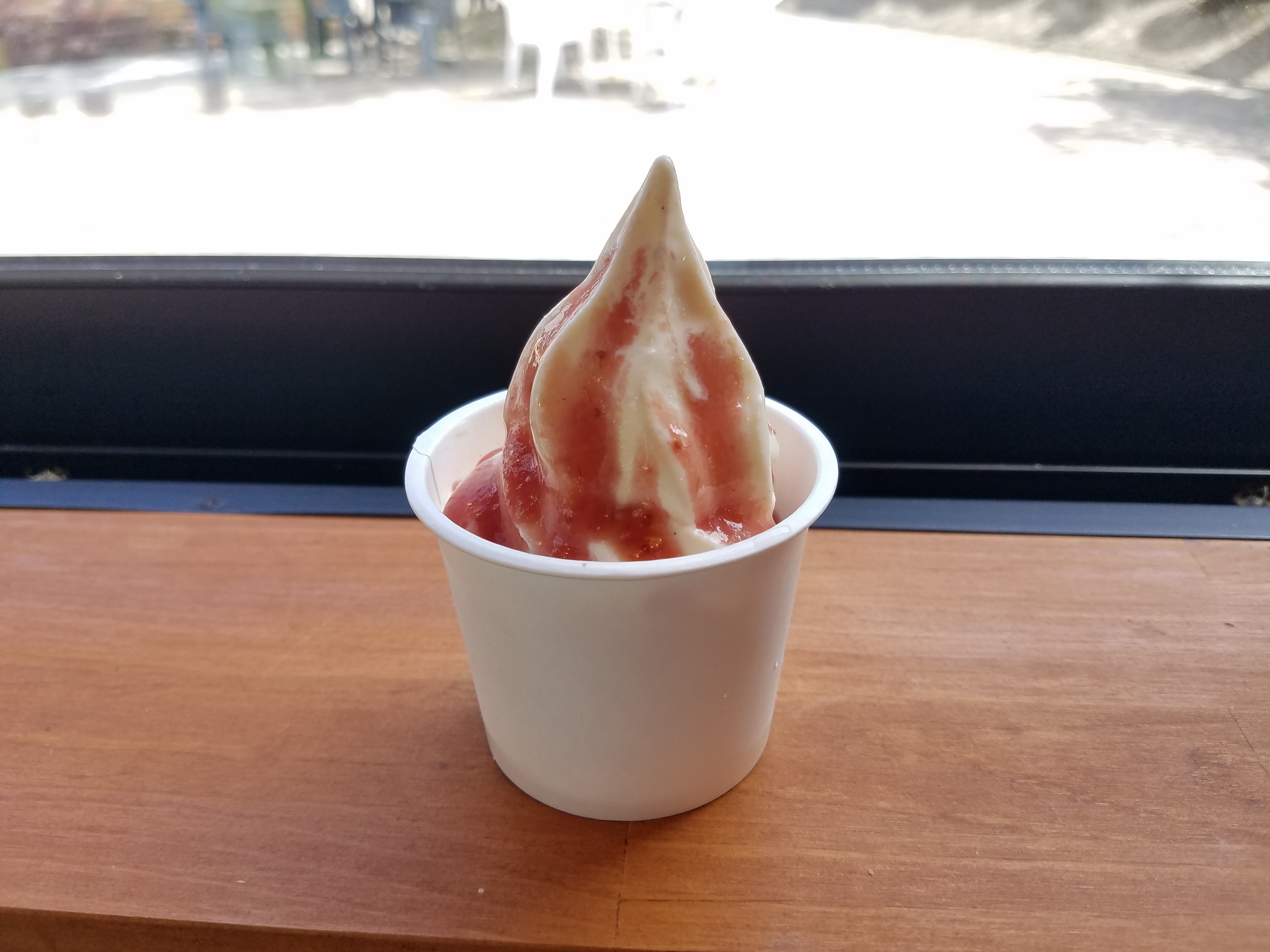 Plenty of the sauce we used is poured over the vanilla ice cream♪