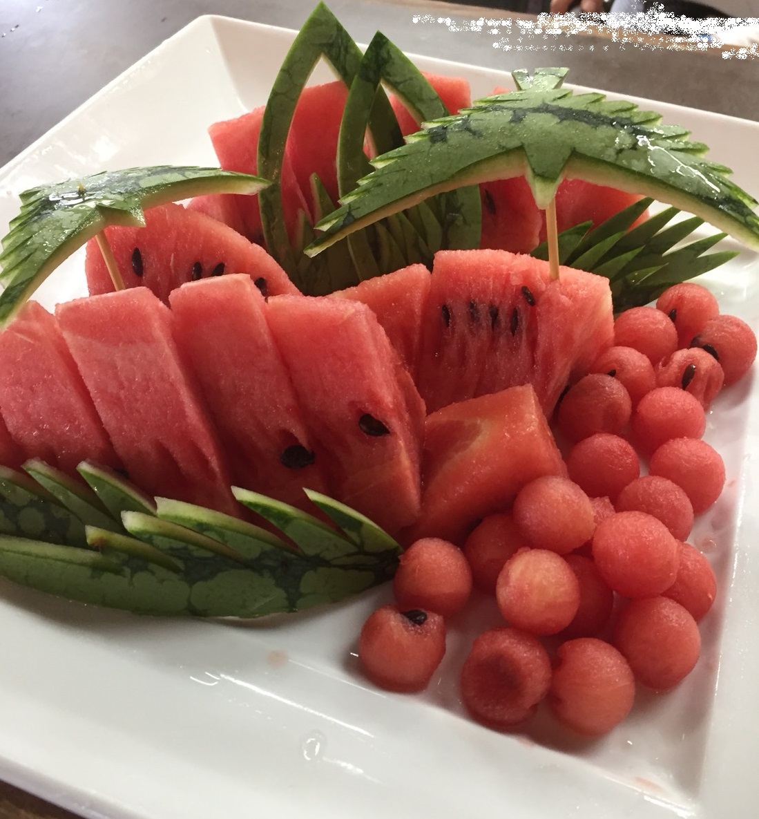 By the way, the photo is of a pesticide-free organic watermelon harvested in a field at the farm department. I tried to decorate it a little bit stylishly.