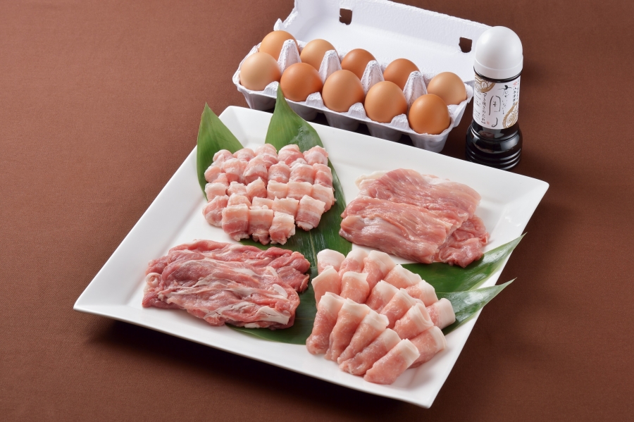 It comes with 4 types of Tategamori Kogen pork, old eggs, and Yagisawa Shoten's sauce.