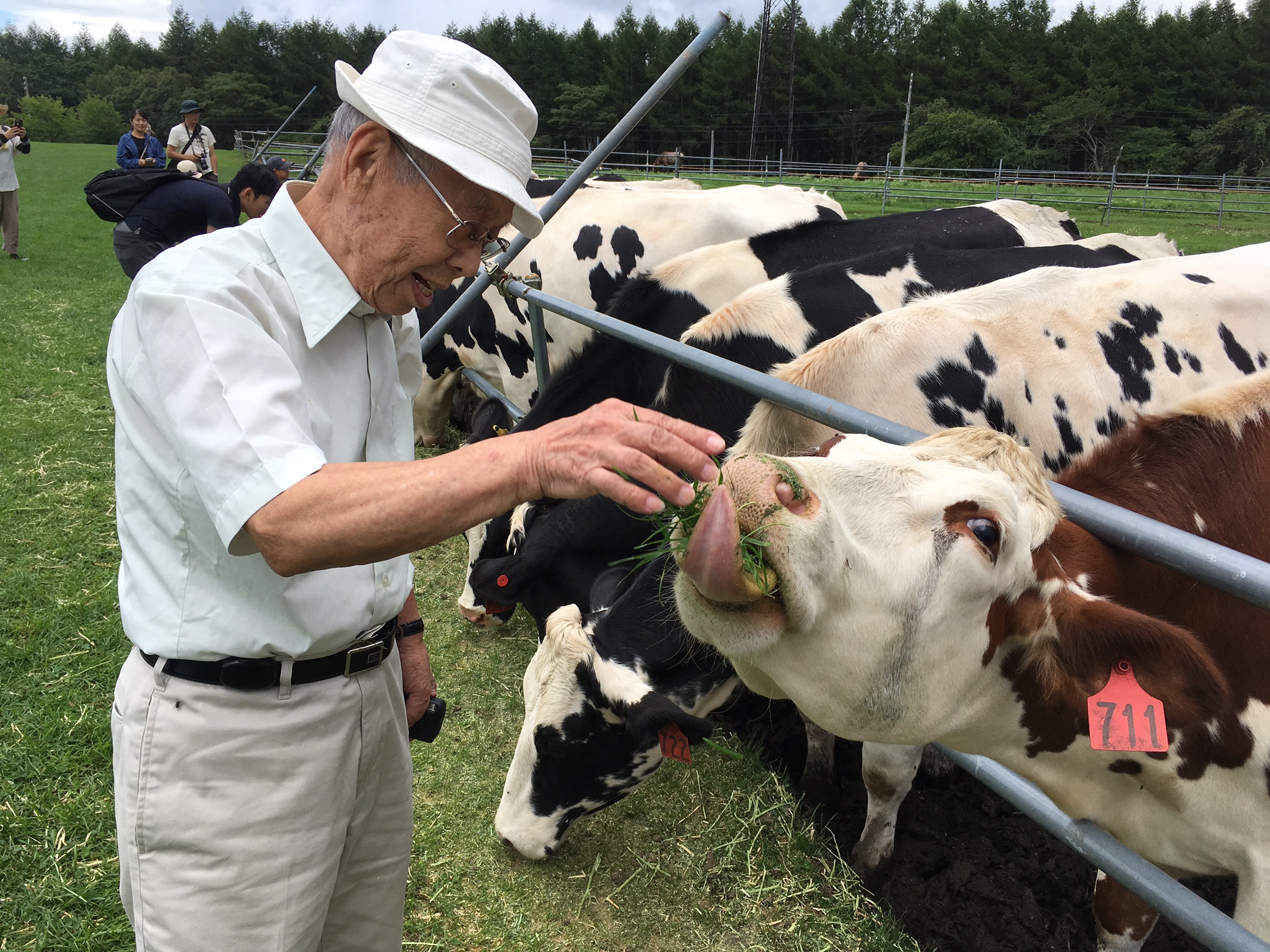 Grandpa and the cow.