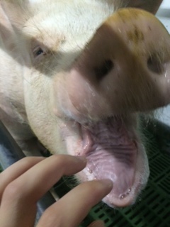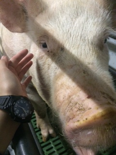 Here we go! She is a very cute mother pig! Thank you for your cooperation in taking pictures while we were resting! Those sharp eyes are so cute (^^)♪