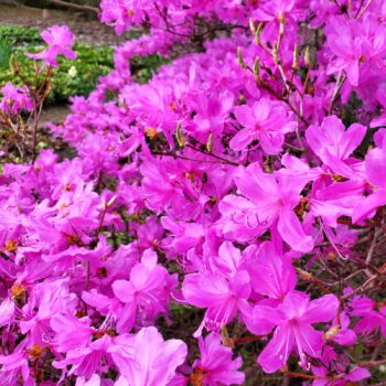 Azalea means azalea. A large number of azaleas have been planted on the ranch since Ark Tategamori opened in Chitategamori more than 30 years ago, and they have grown together with the ranch in cold winters and hot summers. This azalea slope was completed by transplanting the azaleas that had been planted in various places to this sloping land in this renovation work. The best time to see the azaleas is from May. If you go ahead on the Azalea Slope, there is an observatory overlooking Kinuizawa Tomomiji Valley, where you can enjoy the scenery that changes from summer to autumn.